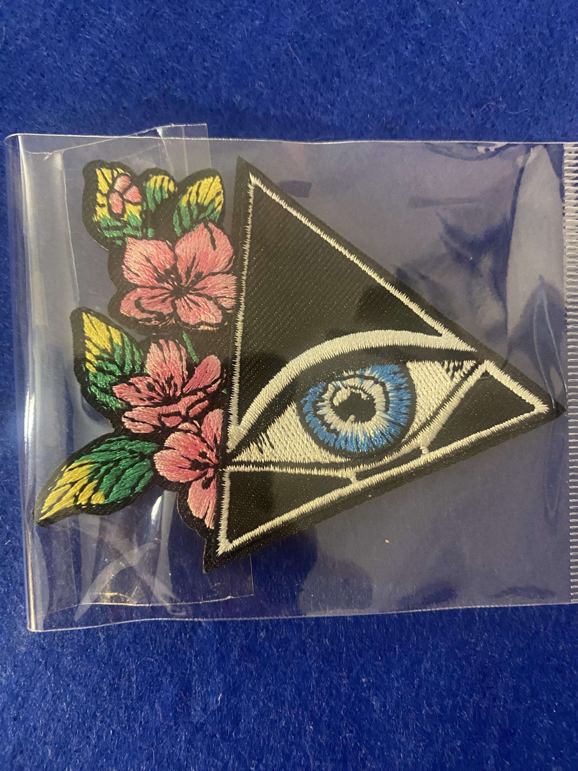 Flower and eye iron on patch.