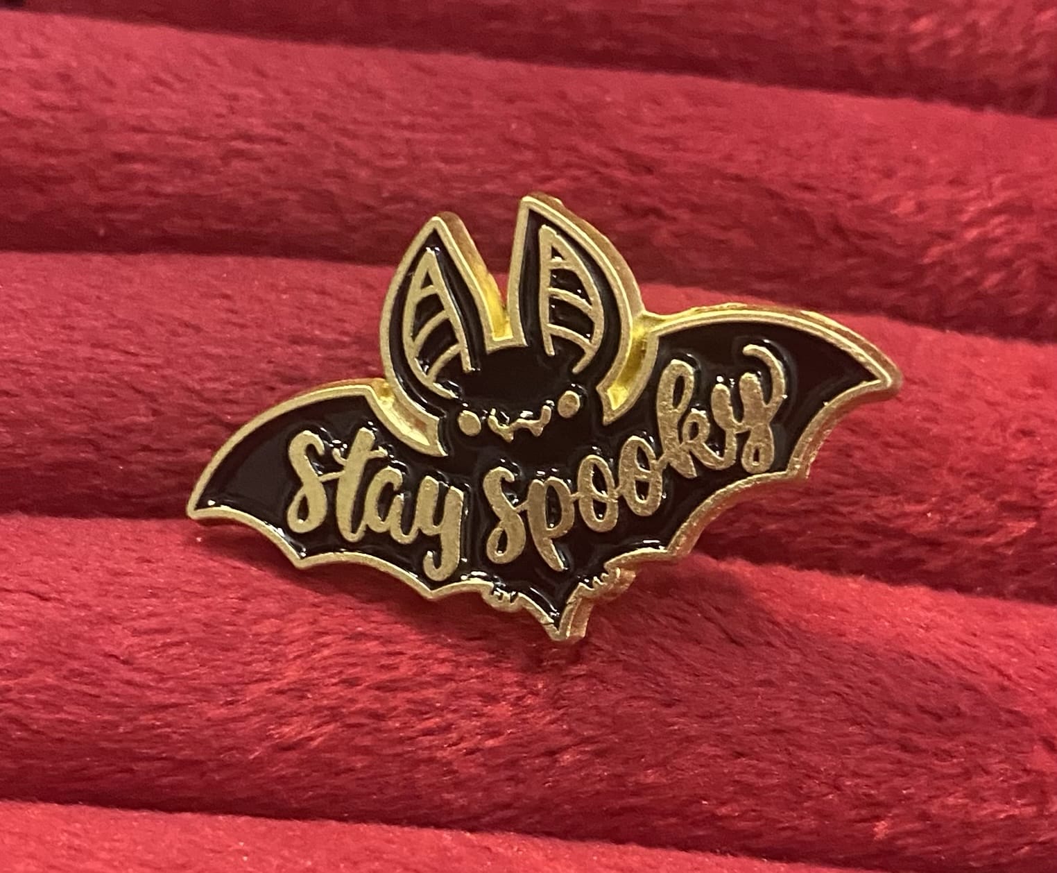 stay spooky bat pin.
